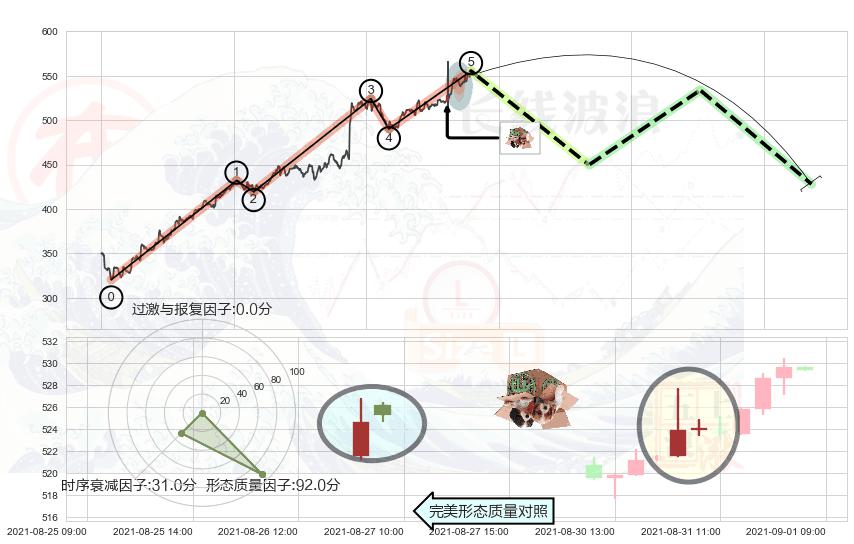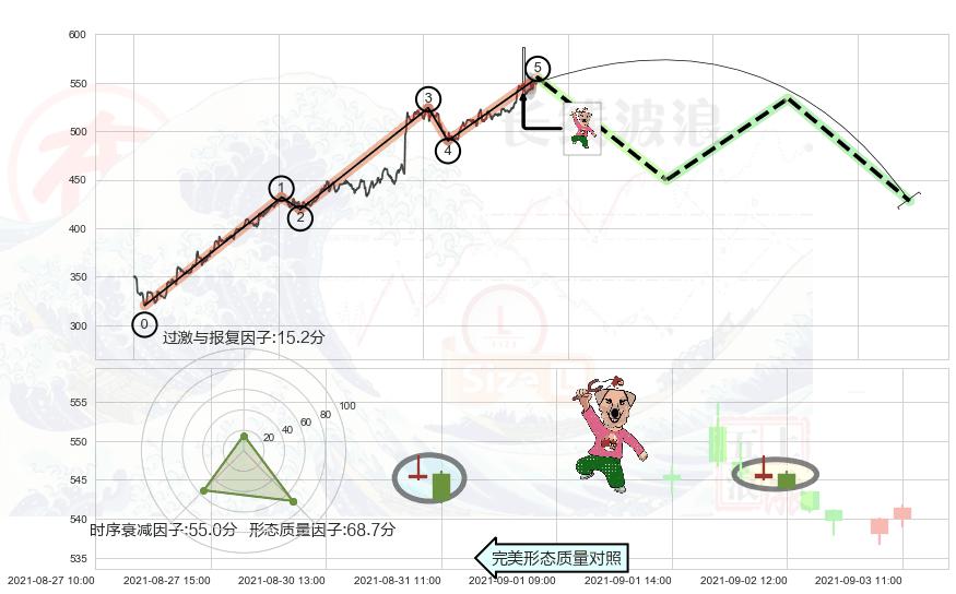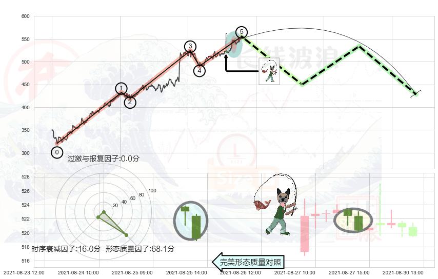 ➣ 射击之星形态 + 波浪理论上涨浪:浪5回调拐点信号叠加后【反向回撤率】中等,【看空】信号叠加【存续影响中等】