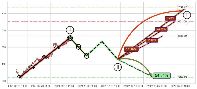 ➣ 循环浪继续向上【平均值】位置(04-21:13, 651.08),匹配聚类样本比例52.93%, 可能性概率24.06%