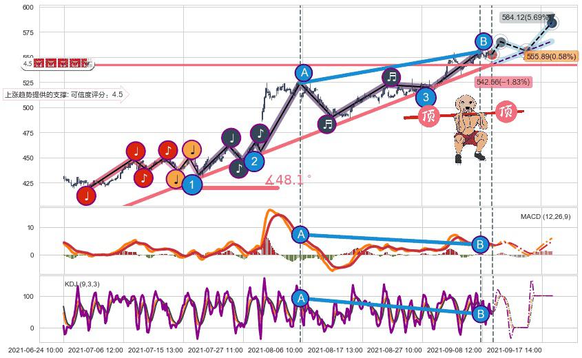 ➣ 预测:2021-09-16 09:00,【试探支撑】稳定目前上涨趋势的前提下,预测价格:555.89