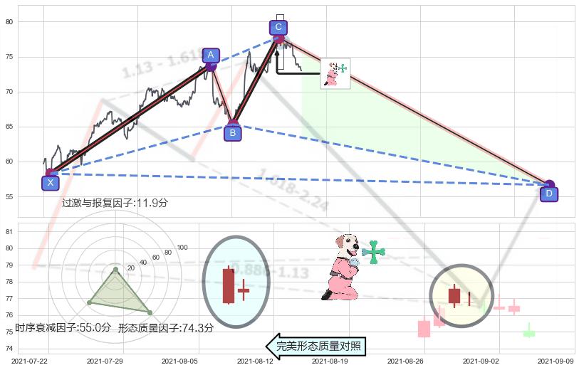 ➢ AB回撤位置在XA的54.5%,符合形态要求