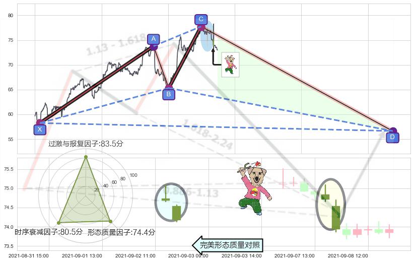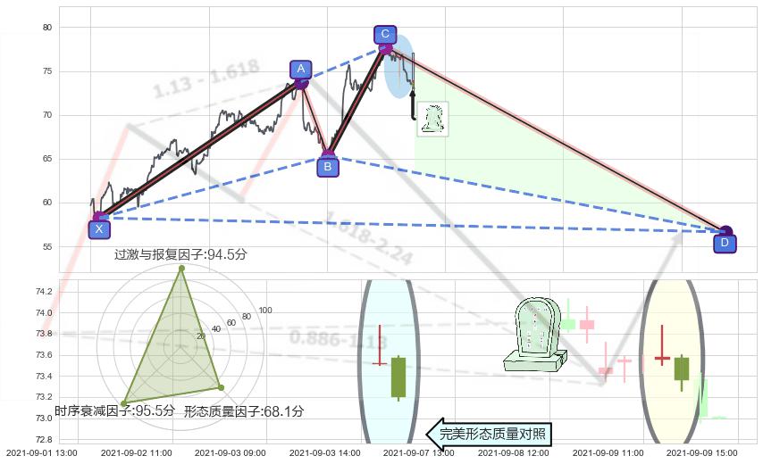 ➢ 🕰 价格走势在2021-09-07 14:00:00至2021-09-08 09:00:00期间形成射击之星形态,残存影响值:-6.08