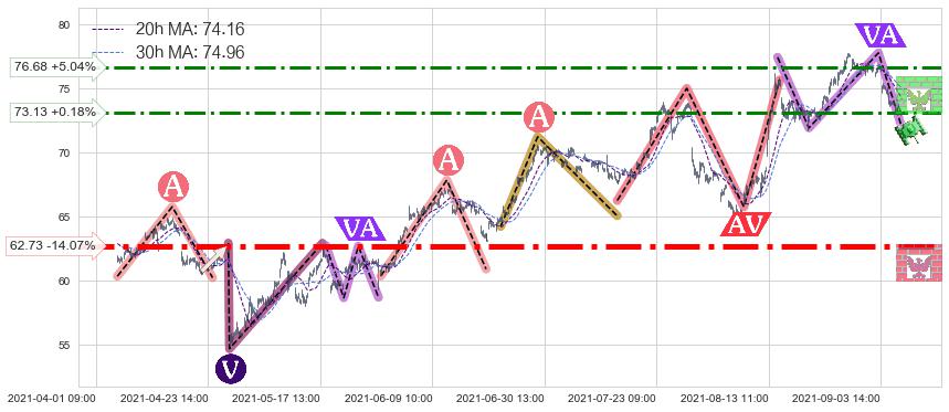 ♞ 20小时均线:74.16,30小时均线:74.96→ 快线<慢线
