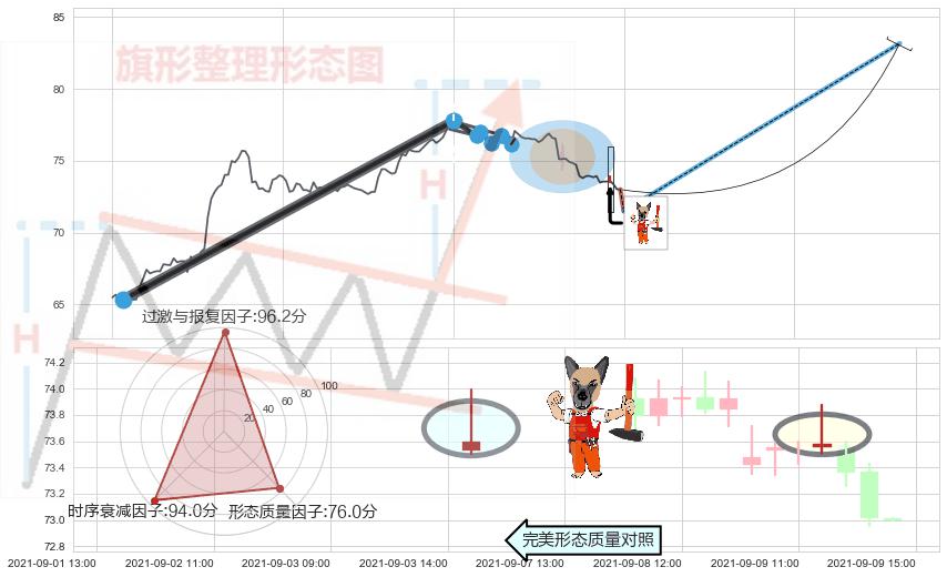 ➢ 【买1】: 激进型 买点 →(09-02:09: 76.50 )形成突破降⚑旗形【整理】形态