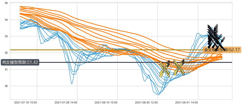 ➣ 21小时均线于(09-07 14:00: 53.18)形成【死叉】基于【死叉历史模型】预测死叉后最低波谷价格: 52.23, 死叉后最低价格52.40,尚未达到预测最低波谷价格, 预期继续下跌