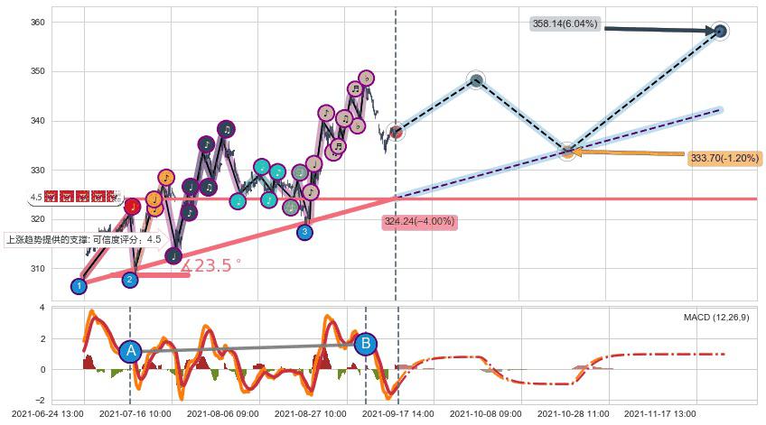 ➣ 预测:2021-10-20 09:00,【小幅回撤】稳定目前上涨趋势的前提下,预测价格:333.70