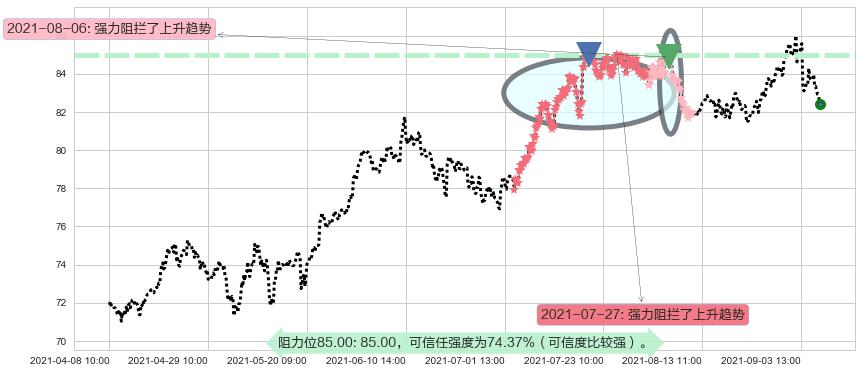 ♘ 阻力价格位85.00,可信任强度74.37%,距离最后交易2021-09-09 14:00形成的收盘价格82.43相差 +3.11%