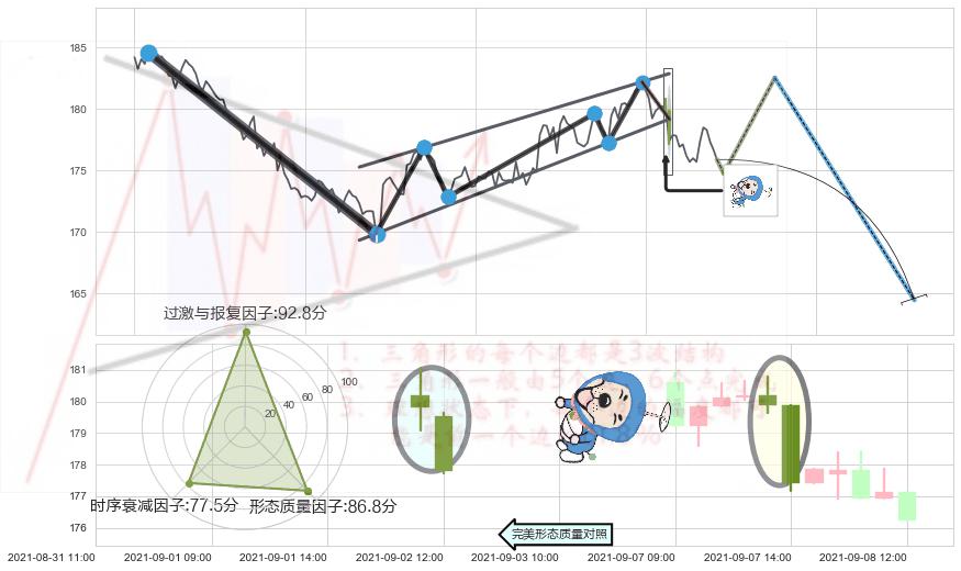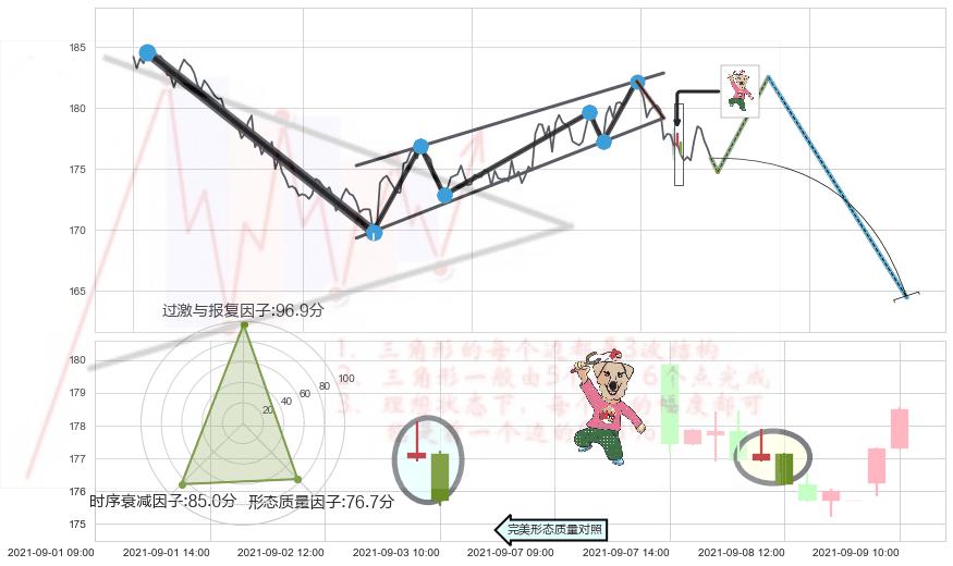 ➢ 🕰 价格走势在2021-09-08 00:00:00至2021-09-09 00:00:00期间形成下跌身怀六甲,残存影响值:-4.76