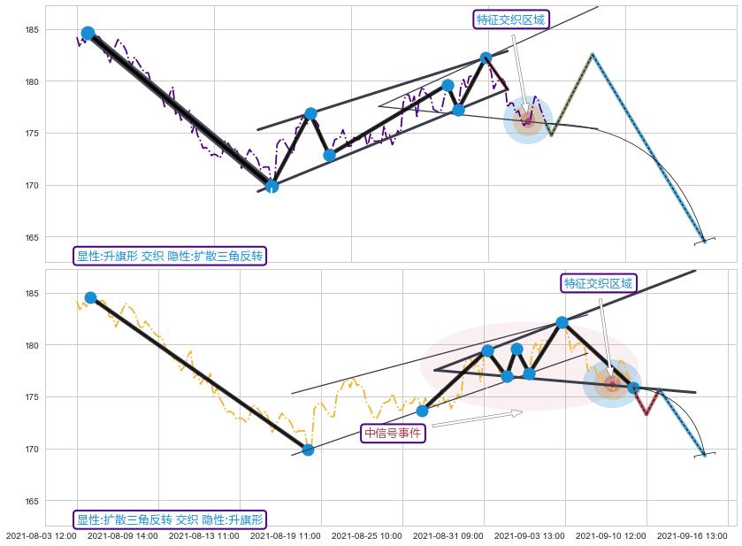 ➢ 扩散三角反转属【中级别信号事件】升旗形属【长级别信号事件】中长周期组合信号事件,中长事件长度比42.86%