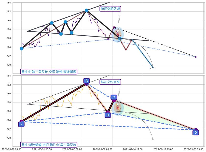 ➢ 扩散三角反转与谐波蝴蝶信号事件周期长度级别相同,同周期信号事件