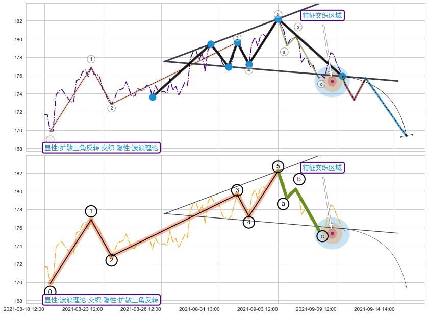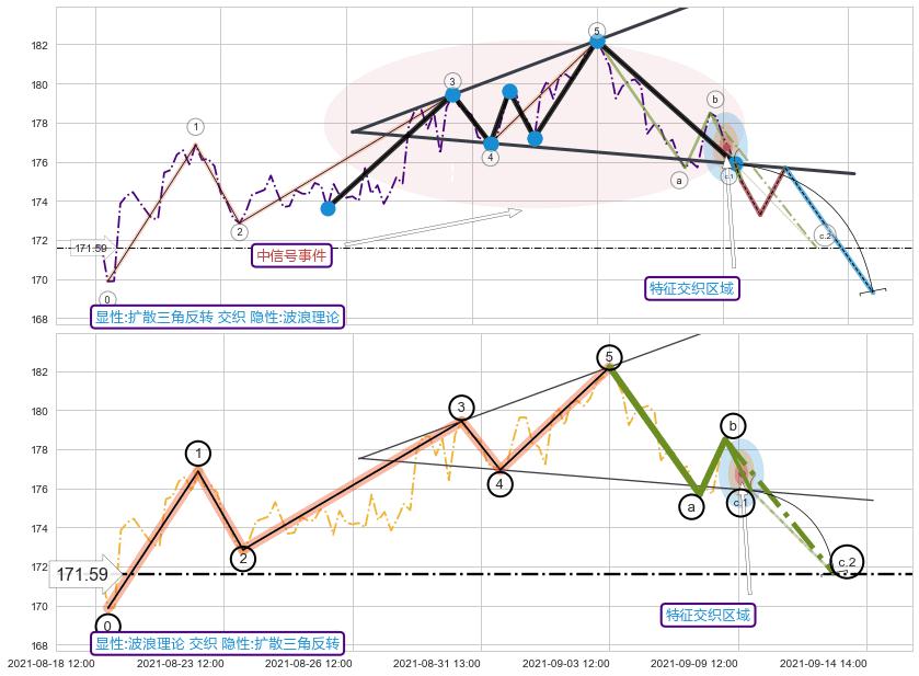 ➢ 扩散三角反转与波浪理论信号事件周期长度级别相同,同周期信号事件
