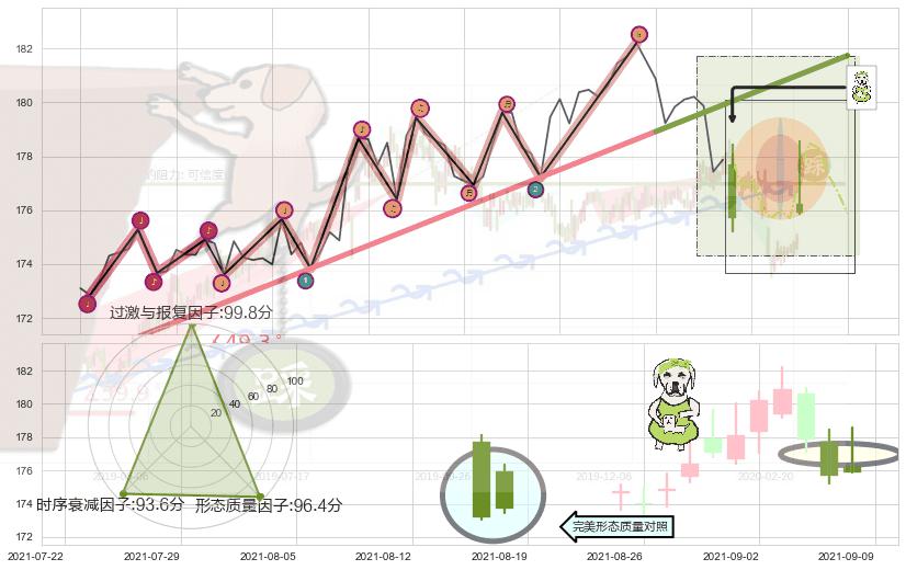 从2021-08-03 09:00至2021-08-30 09:00,共包含123个小时,阶段股价下跌-4.08%,阶段股价变动位移路程比: 1 : 10,下跌趋势角度: 67.3