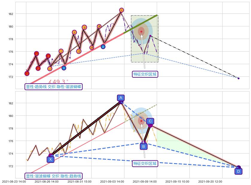 ➢ 趋势线与谐波蝴蝶信号事件周期长度级别相同,同周期信号事件