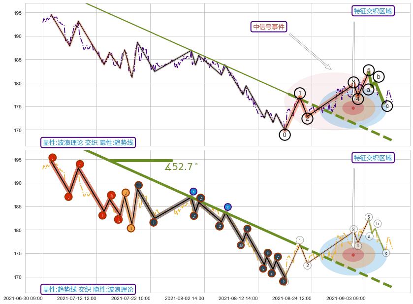 ➢ 趋势线属【短级别信号事件】波浪理论属【长级别信号事件】长短周期组合信号事件, 短长事件长度比23.99%