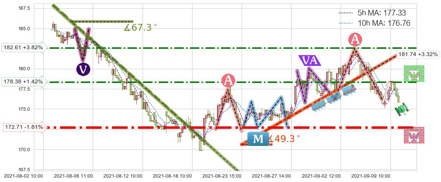 ➣ 【仅预测突破】最后价格:175.89与预测突破价格:175.00→【空间中等】后续最小【反转】第一目标价格→(09-15:12: 169.29 )