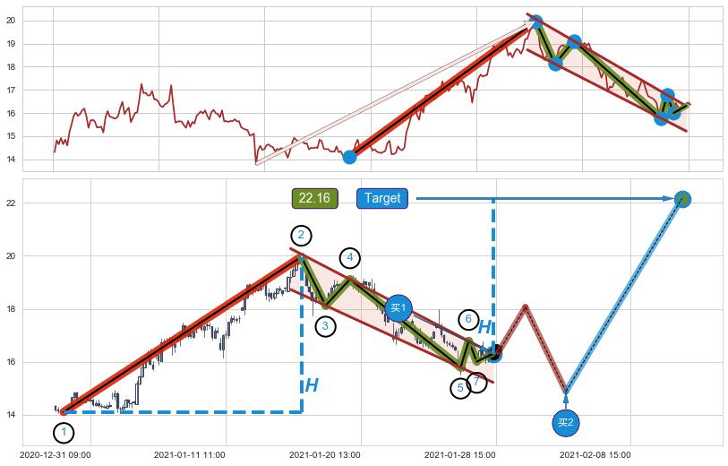 ➣ 最小中继整理涨幅→𝐇: 5.86 (𝐇旗杆的长度:旗杆起点→顶点)