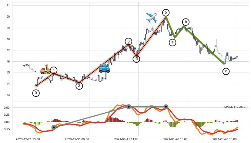 ➣ 波浪理论:猜想达到c点后小回调终止反转上涨 → 上涨 → 【拐点】临近 → 阶段均值回复结束后继续大周期趋势跟踪