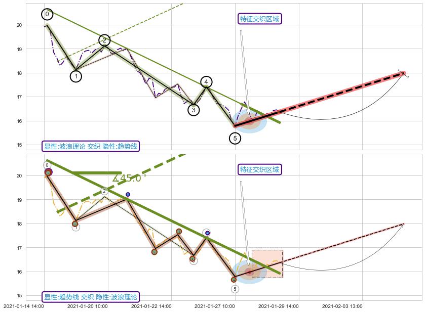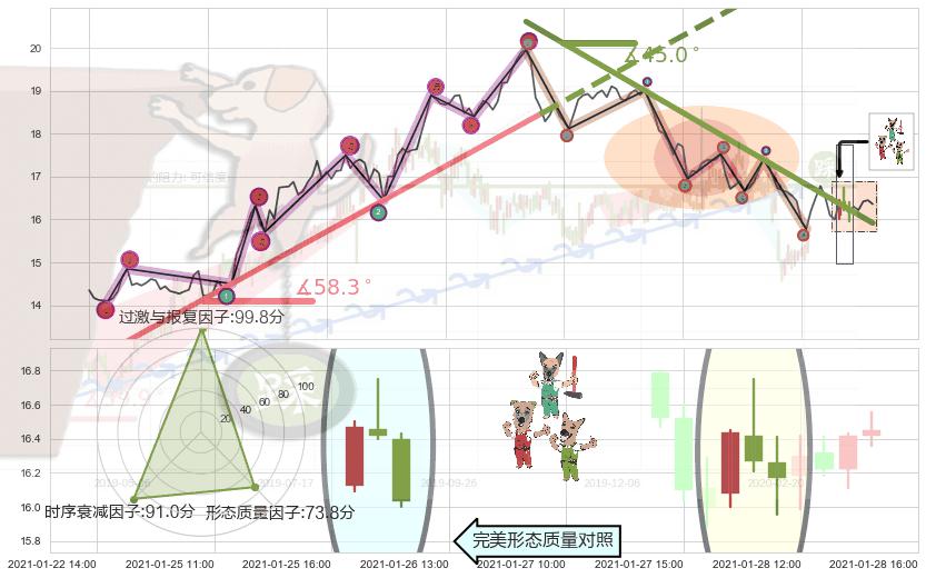 ➢ 2021-01-14 15:00-2021-01-27 12:00下跌趋势存在反转上涨[机会],其原下跌趋势的阻力位(15.92)已被突破[强支撑信号],原下跌趋势角度: 45.0˚