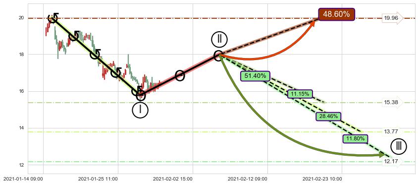 ➢ 循环浪继续向下【最高】位置(02-19:12, 15.38),匹配聚类样本比例21.69%, 可能性概率11.15%