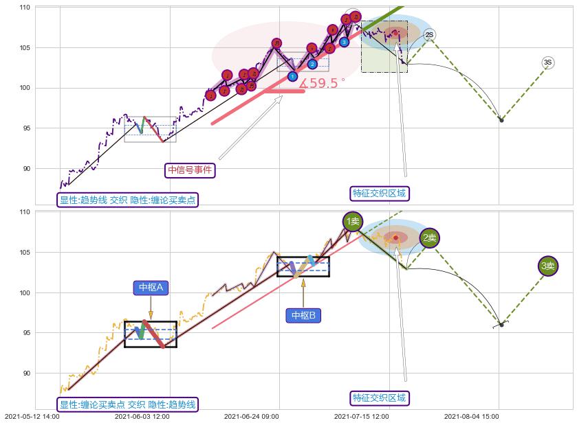 ➣ 缠论买卖点:猜想2卖持续蓄力下跌至3卖 → 下跌 → 风险信号 → 小趋势跟踪