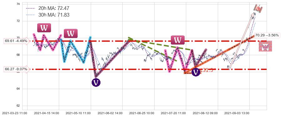 ♞ 20小时均线:72.47,30小时均线:71.83→ 快线>慢线