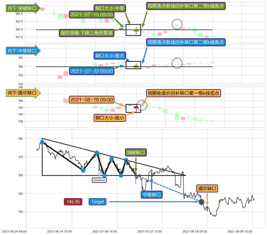 ➢ 2021-08-18 09:00形成:向下跳空【竭尽】缺口