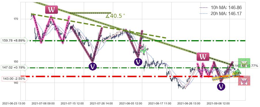 ♘ 阻力价格位159.78,可信任强度77.88%,距离最后交易2021-09-09 14:00形成的收盘价格146.74相差 +8.89%