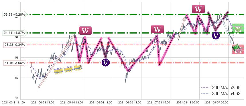 ♘ 阻力价格位54.41,可信任强度81.19%,距离最后交易2021-09-09 15:00形成的收盘价格53.41相差 +1.87%