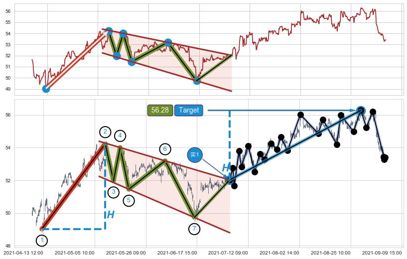 ➣ 最小中继整理涨幅→𝐇: 5.22 (𝐇旗杆的长度:旗杆起点→顶点)