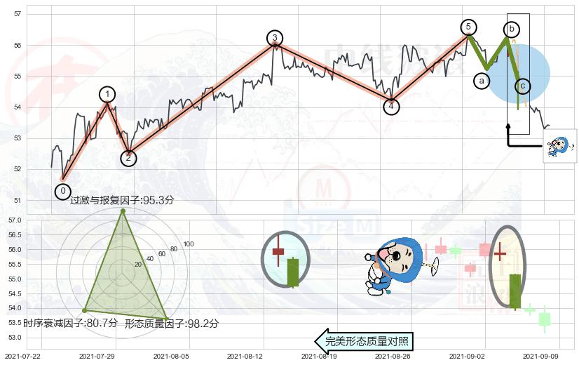 从2021-08-12 11:00至2021-08-20 10:00,共包含36个小时,阶段股价上涨0.53%,阶段股价变动位移路程比: 1 : 21