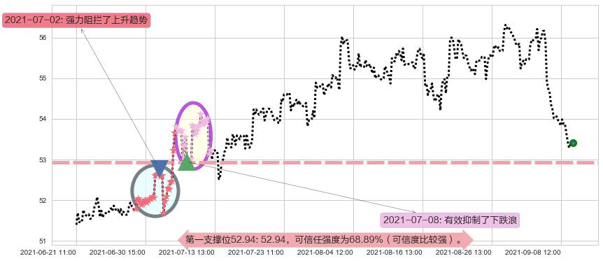 ♘ 阻力价格位54.13,可信任强度72.57%,距离最后交易2021-09-09 15:00形成的收盘价格53.41相差 +1.36%