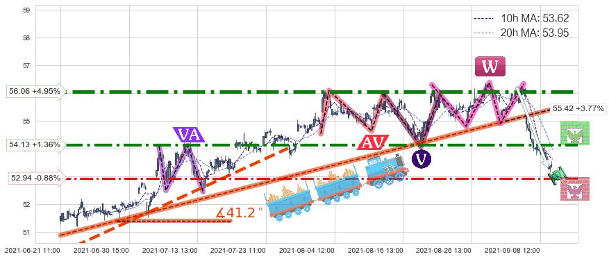 ♞ 10小时均线:53.62,20小时均线:53.95→ 快线<慢线