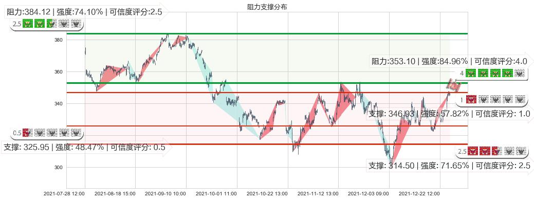 ♘ 阻力价格位353.10,可信任强度84.96%,距离最后交易2021-12-27 15:00形成的收盘价格346.18相差 +2.00%