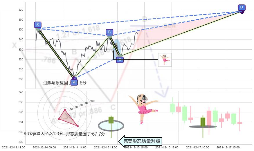 ➢ 🕰 价格走势在2021-12-17 09:00:00至2021-12-17 09:00:00期间形成单针探底(定海神针),残存影响值:2.30