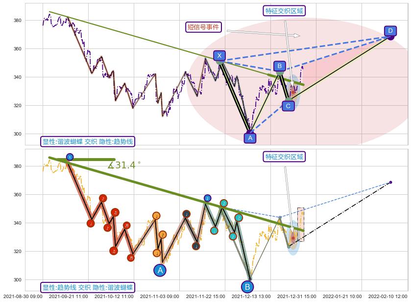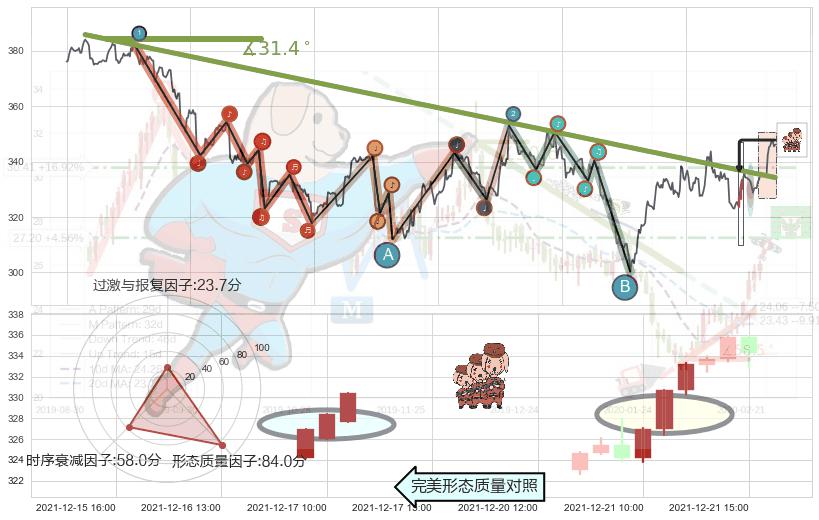 ➢ 2021-09-01 11:00-2021-12-10 15:00下跌趋势存在反转上涨[机会],其原下跌趋势的阻力位(334.28)已被突破[强支撑信号],原下跌趋势角度: 31.4˚