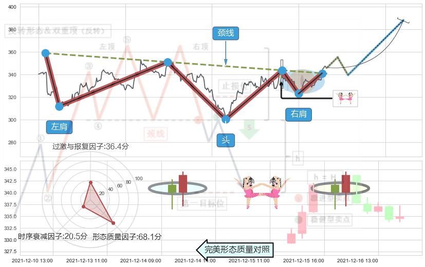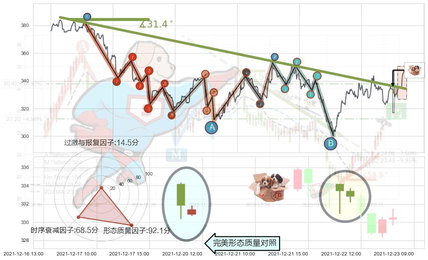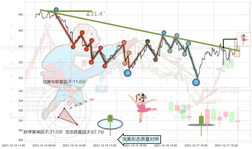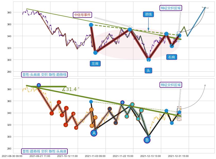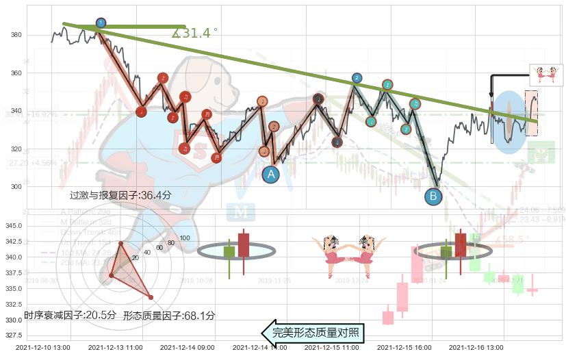 ➣ 2021-09-01 11:00-2021-12-10 15:00下跌趋势存在反转上涨[机会],其原下跌趋势的阻力位(334.28)已被突破[强支撑信号],原下跌趋势角度: 31.4˚