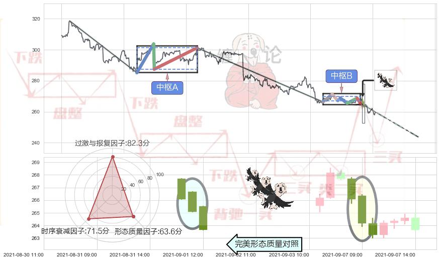 ➢ 下跌镊子线(n形磁铁) + 缠论中枢点破位中枢B支撑下拉信号叠加后【反向回撤率】极低,【看空】信号叠加【存续影响极大】