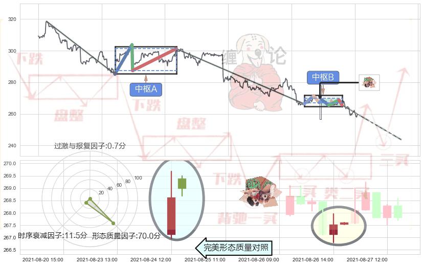 ➢ 下跌镊子线(n形磁铁) 🔜 缠论中枢点破位中枢B支撑下拉 综合量化分数:48.17 【中性】