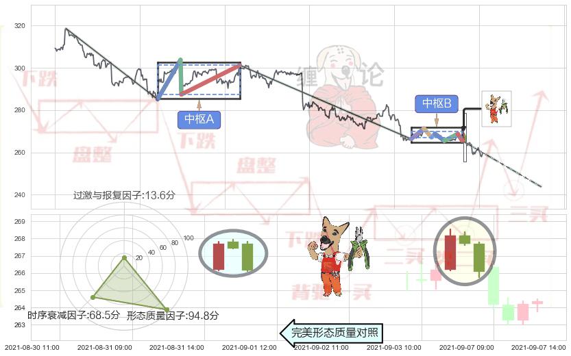 ➢ 【中枢B】:08-20:15-09-03:10,中枢由7笔构成,共61交易小时, ZG=268.76, ZD=267.11