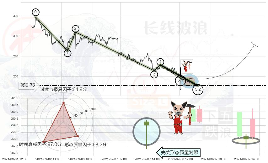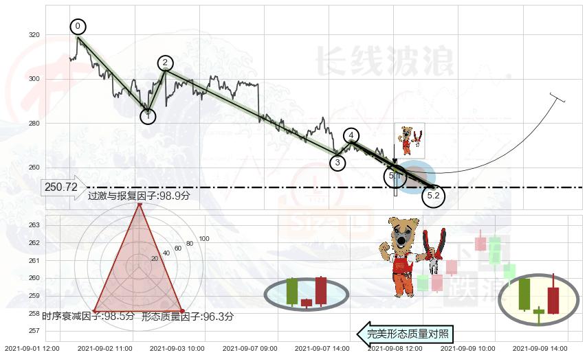 ➣ 5.1: 预测当前第5浪位置(09-09:13, 257.99),仍然有下跌空间