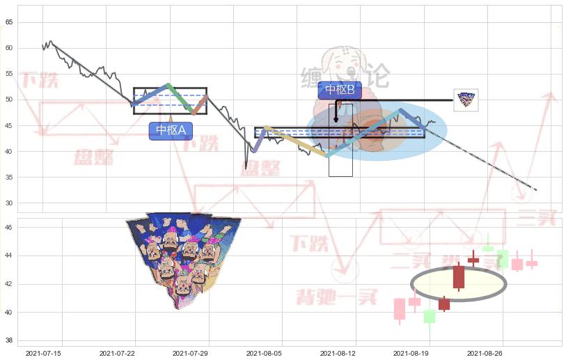 ➣ 缠论中枢点:猜想破位中枢B后持续下拉 → 下跌 → 破位中枢B支撑 → 持续趋势跟踪