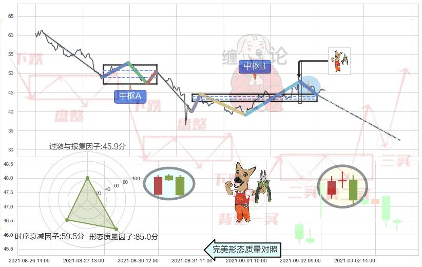 ➢ 下跌镊子线(n形磁铁) 🔜 缠论中枢点破位中枢B支撑下拉 综合量化分数:48.33 【中性】