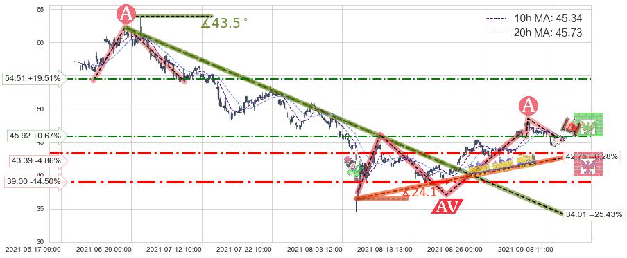 ♘ 支撑价格位43.39,可信任强度55.70%,距离最后交易2021-09-09 14:00形成的收盘价格45.61相差 -4.86%