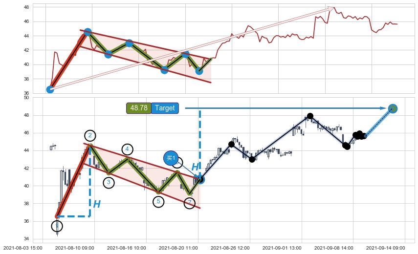 ➣ 最小中继整理涨幅→𝐇: 8.05 (𝐇旗杆的长度:旗杆起点→顶点)