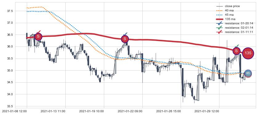 ➢ 最优均线组合共正确确认支撑阻力信号10处,正确确认率 62.50%
