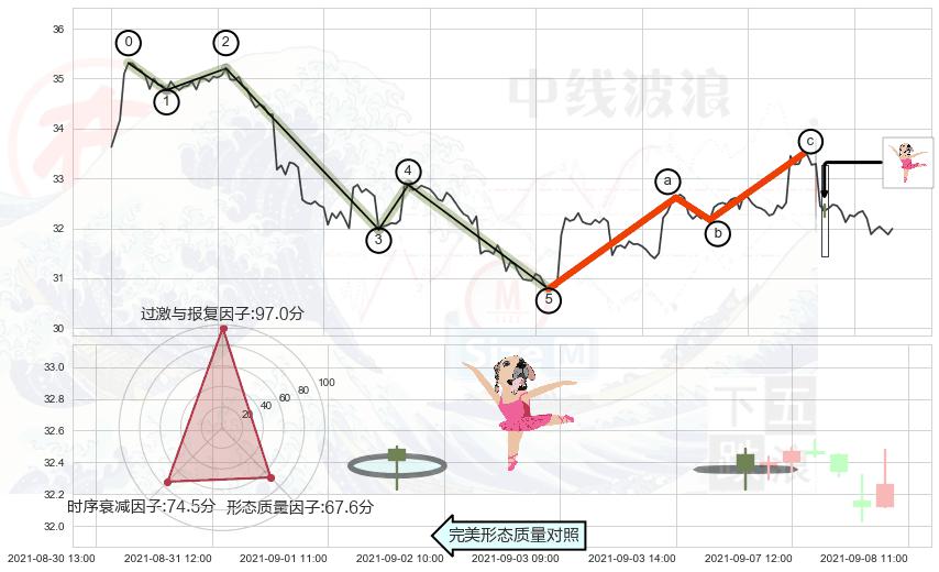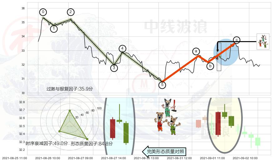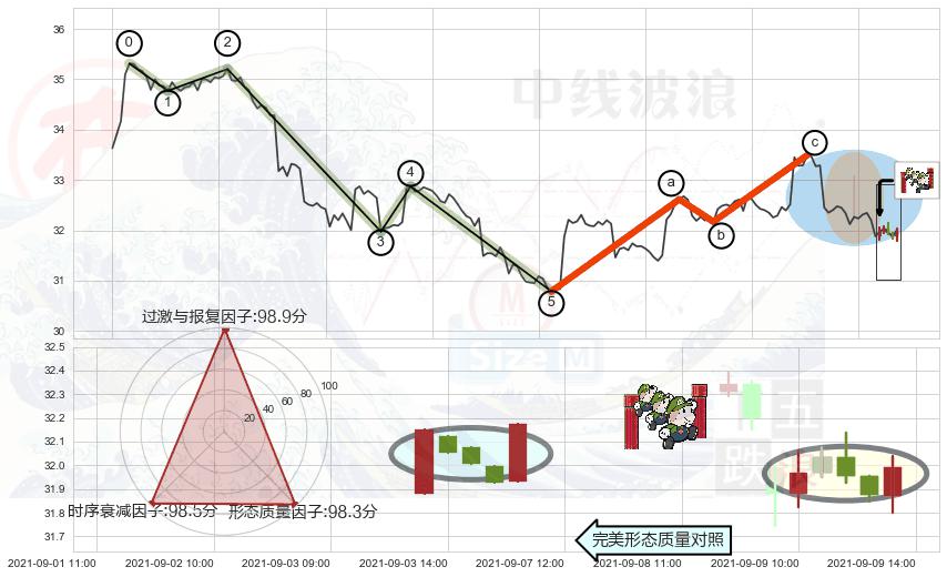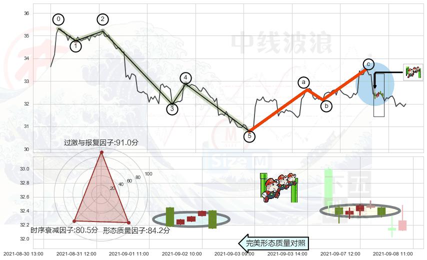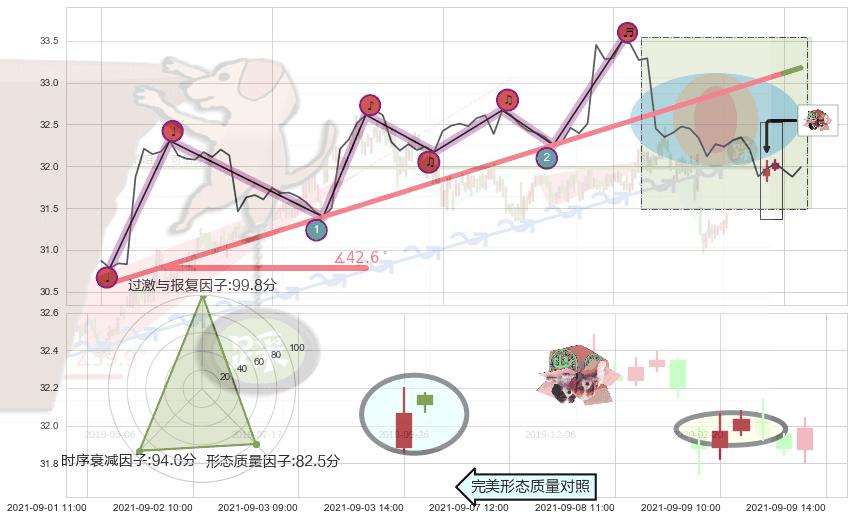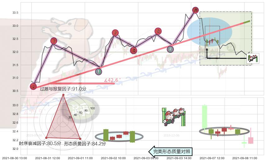 ➣ 2021-08-20 13:00-2021-09-09 12:00上升趋势存在反转[风险],其原上升趋势的支撑位(33.18)已破位[强阻力信号],原上升趋势角度: 42.6˚