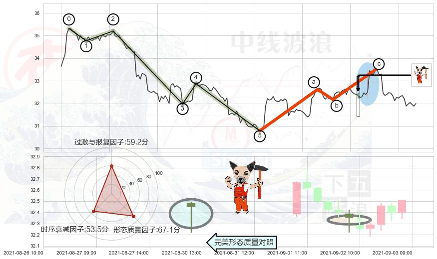 ➢ 下跌镊子线(n形磁铁) 🔜 波浪理论c点反弹终止反转下跌 综合量化分数:46.54 【中性】
