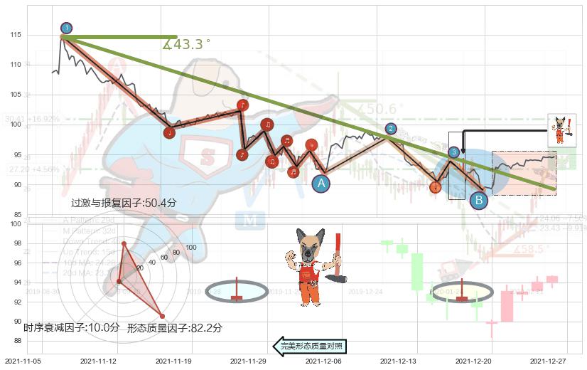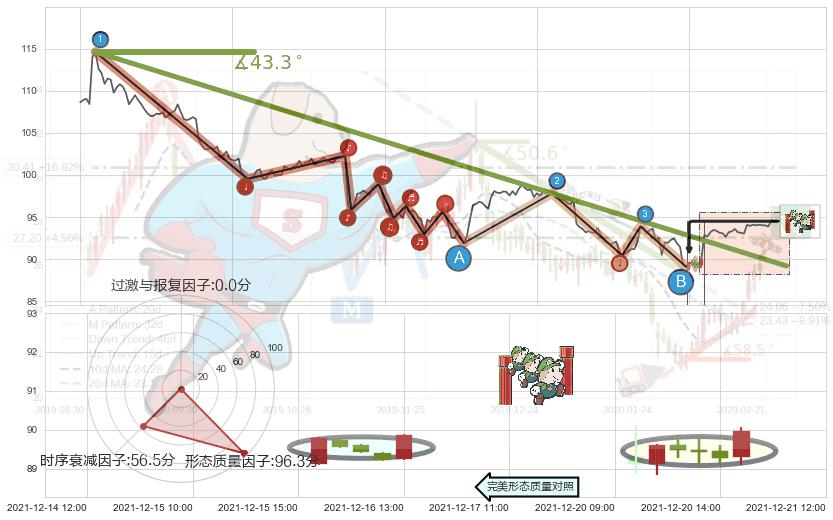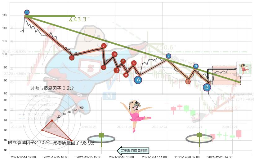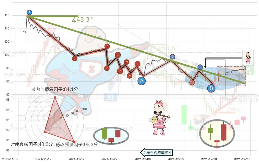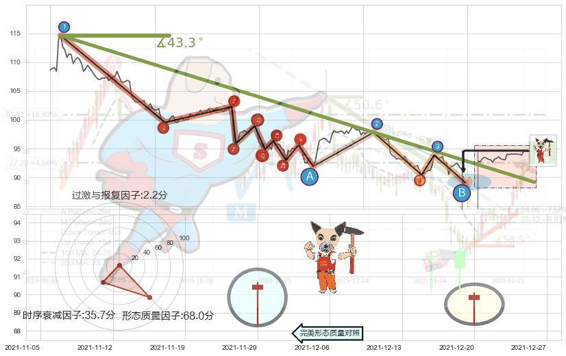 从2021-11-09 10:00至2021-12-21 11:00,共包含203个小时,阶段股价下跌-19.86%,阶段股价变动位移路程比: 1 : 5,下跌趋势角度: 43.3