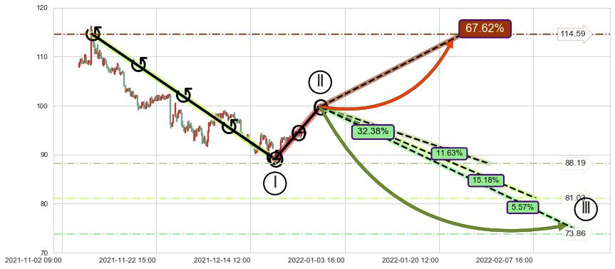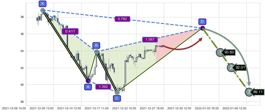➣ D点拟合预测价格96.69,距离最后交易收盘价格94.63相差 +2.18%