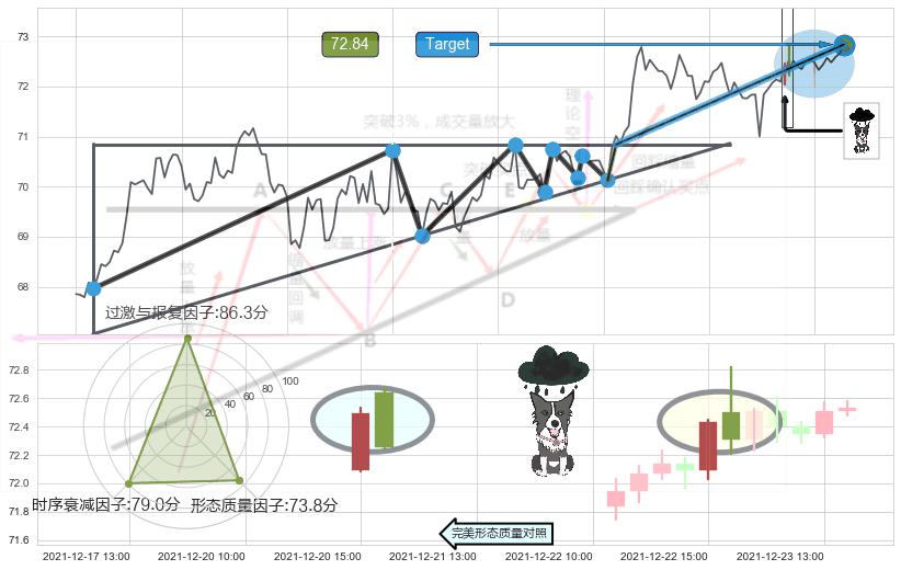 ♘ 在最后的上升阶段2021-12-01 09:00至2021-12-27 15:00存在 持续未破位的支撑位 ,支撑价格71.54,支撑可信任强度79.72%,其距离最后价格72.87相差 -1.83%