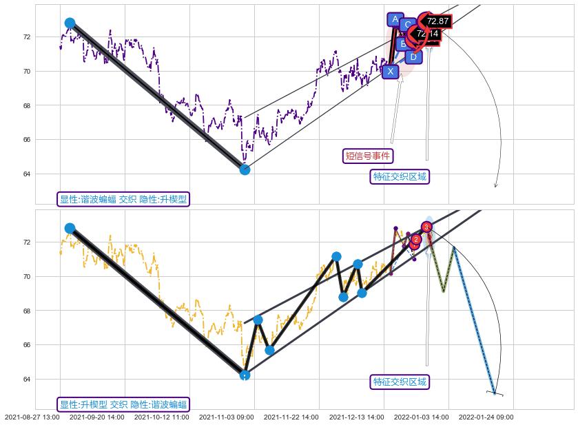 ➢ 谐波蝙蝠属【短级别信号事件】升楔型属【长级别信号事件】长短周期组合信号事件, 短长事件长度比6.70%